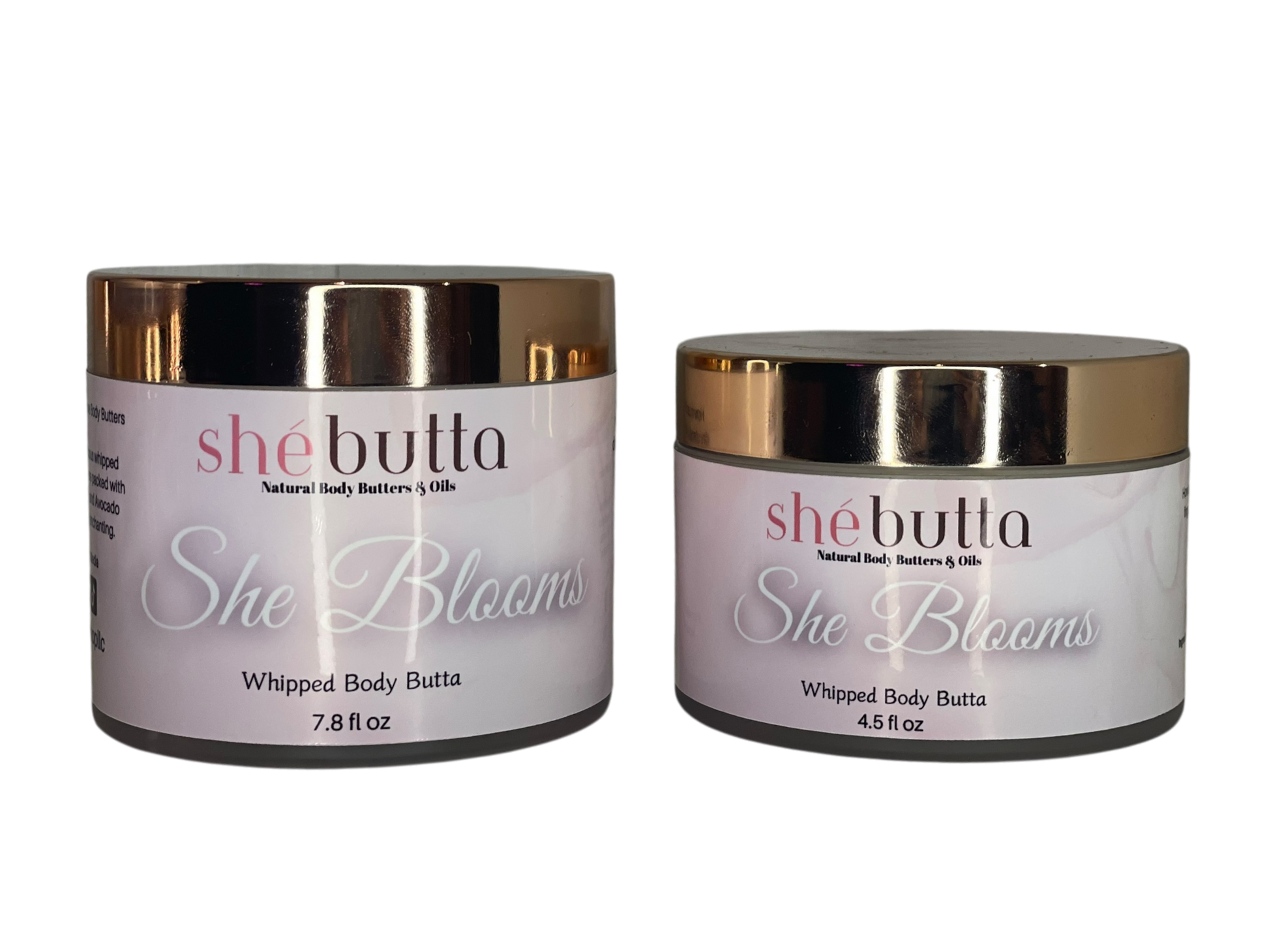 Let your skin bloom with She Blooms Body Butter, a rich and luxurious moisturizer crafted to deeply hydrate and rejuvenate. Infused with a radiant floral fragrance, this body butter will leave you feeling refreshed, confident, and ready to blossom into your best self.